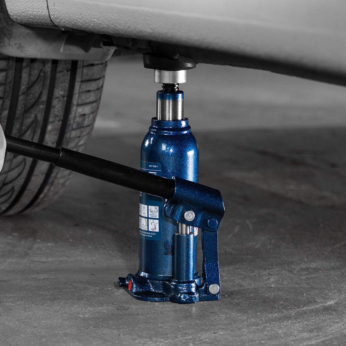 • Безопасная эксплуатация — благодаря предохранительному клапану домкрат не поднимает грузы тяжелее 3000 кг.