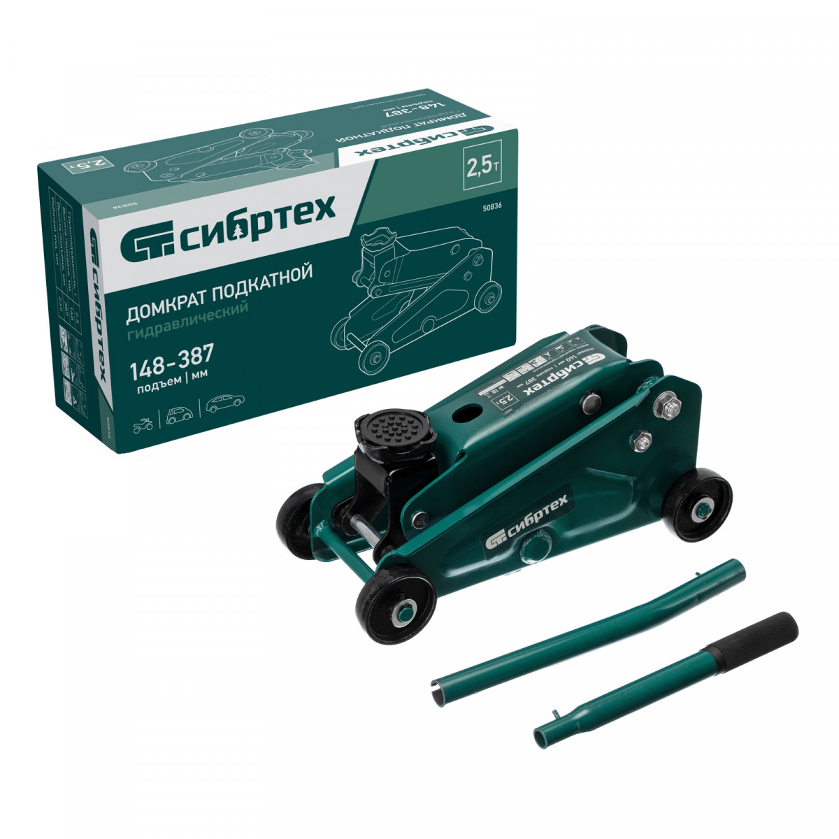 Домкрат гидравлический подкатной, 2,5 т, 148-387 мм Сибртех