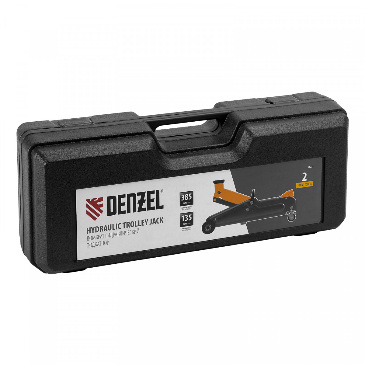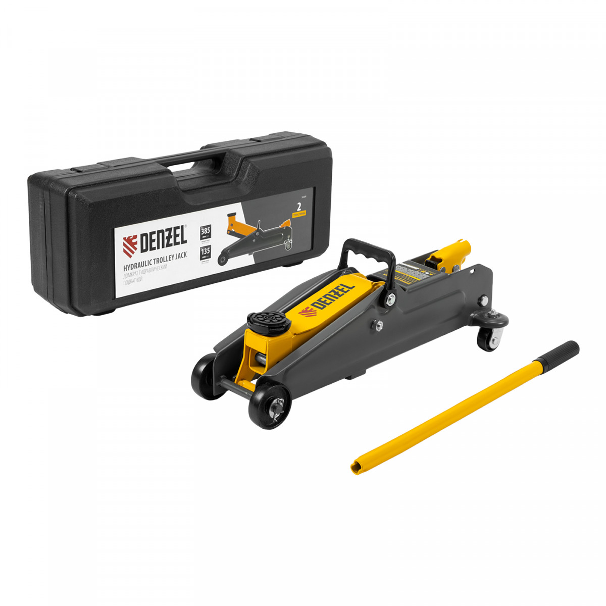 Домкрат гидравлический подкатной, 2 т, 135-385 мм, в пласт. кейсе Denzel