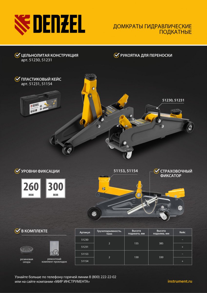 • Удобное хранение и транспортировка — домкрат поставляется в прочном пластиковом кейсе.