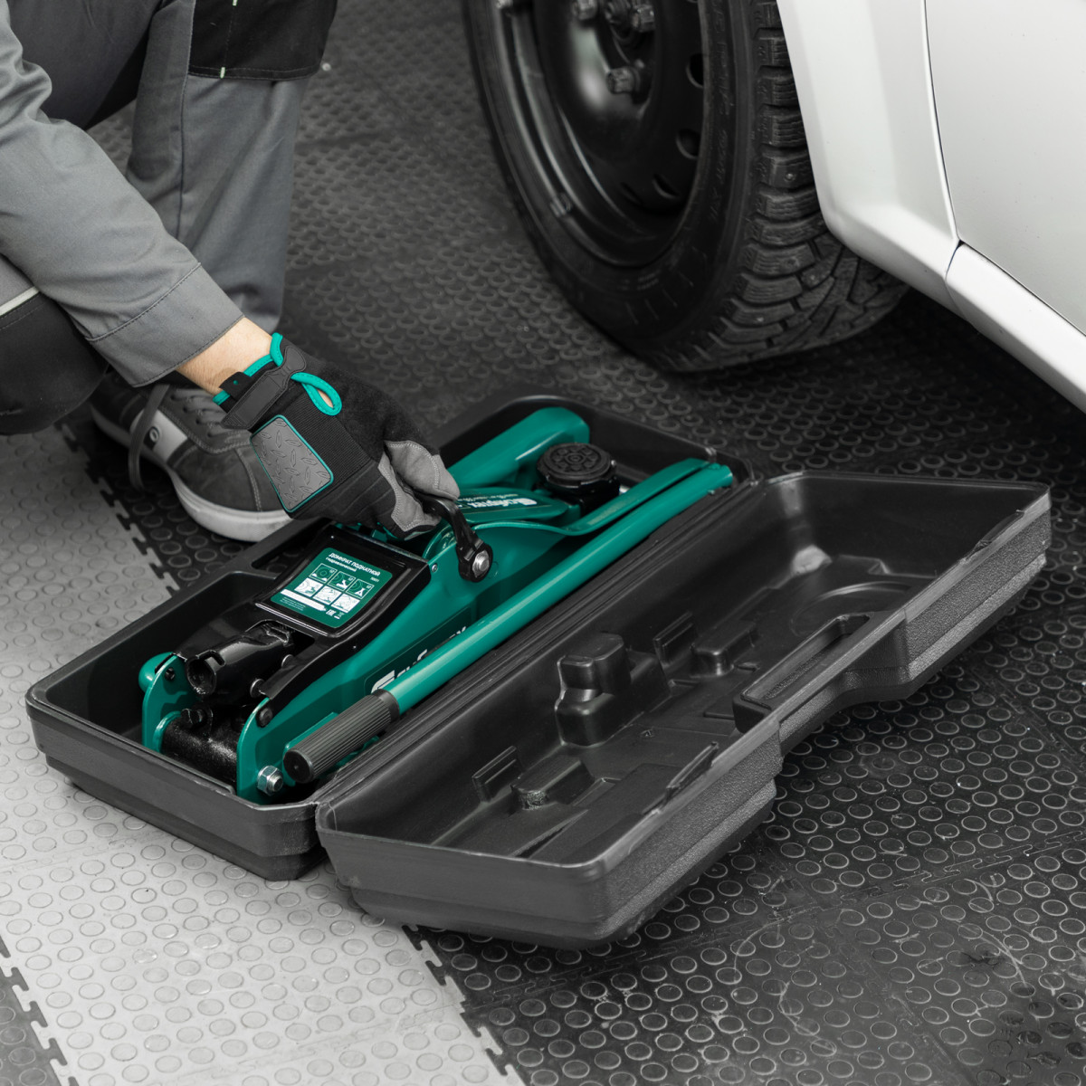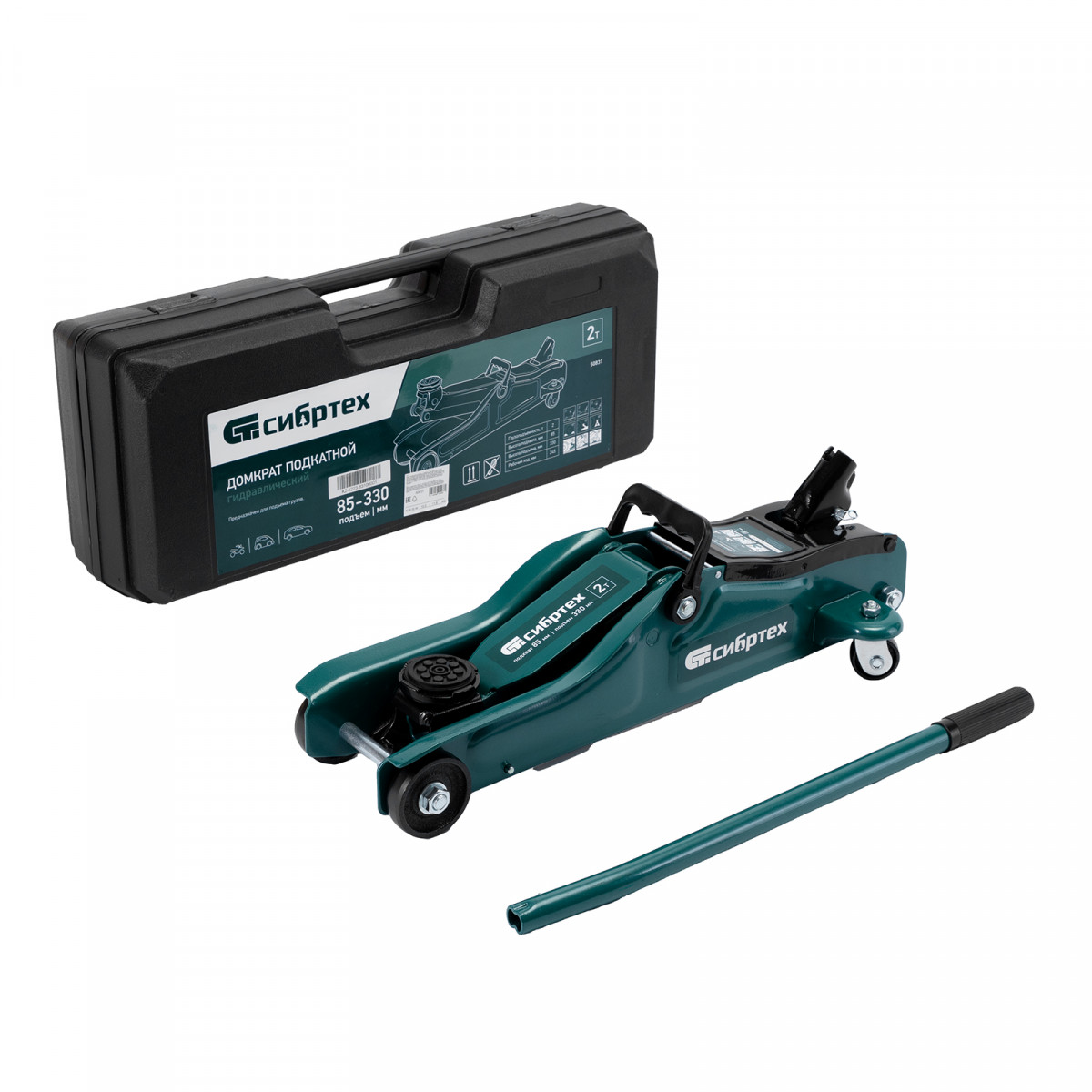 Домкрат гидравлический подкатной, 2 т, 85-330 мм, низкий подхват, в пласт. кейсе Сибртех