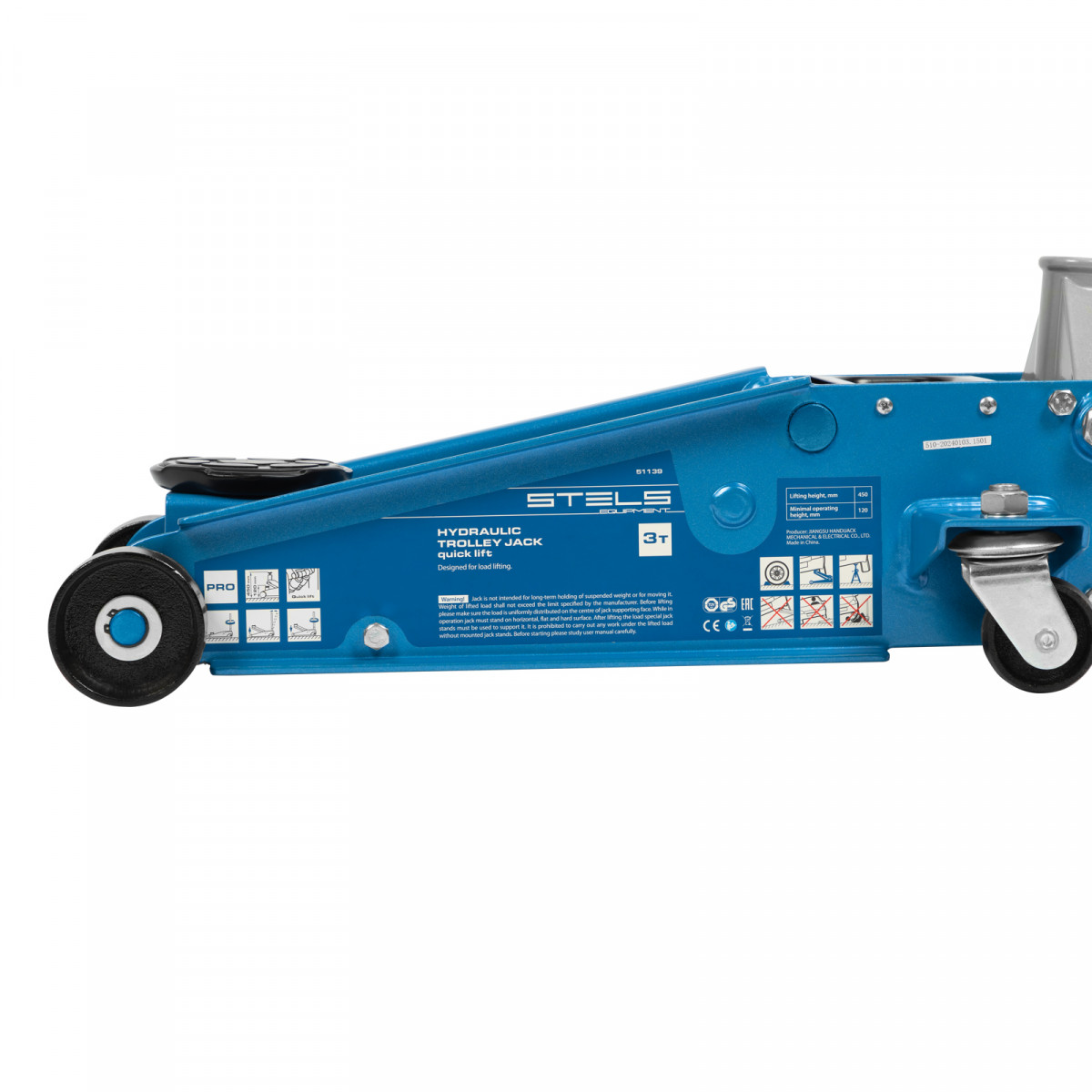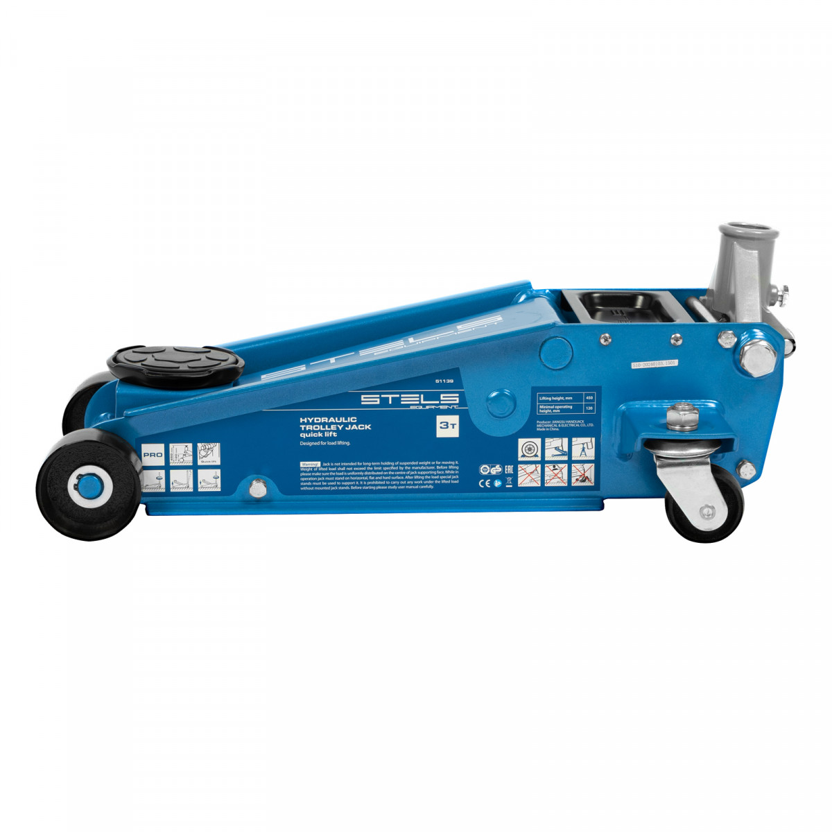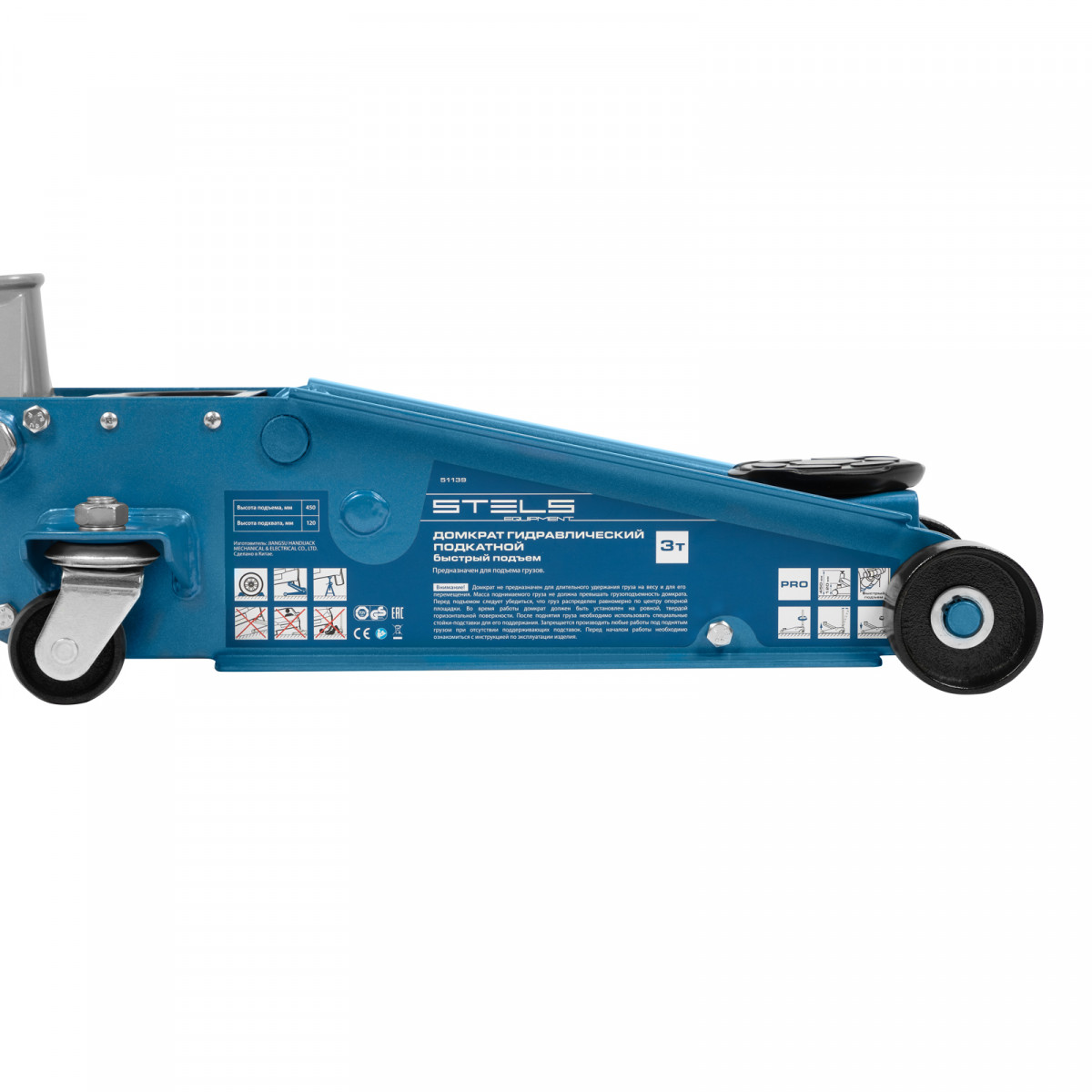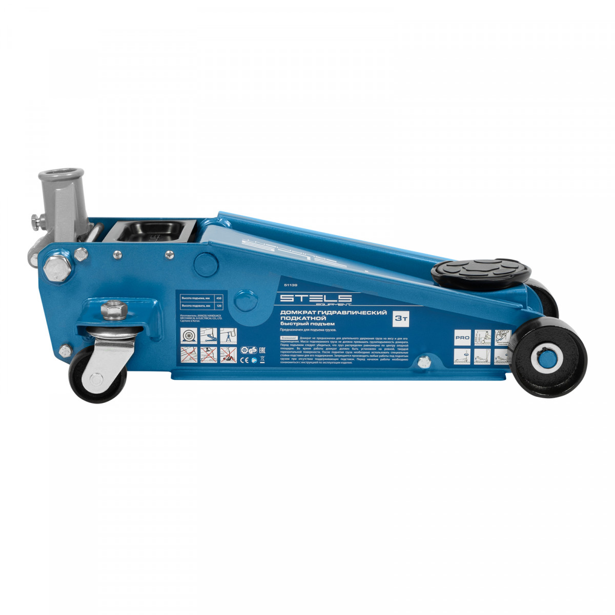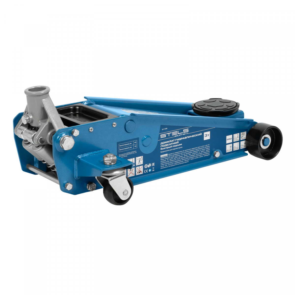 Профессиональный подкатной гидравлический домкрат Stels 51139 используется для быстрого подъема на высоту 120-450 мм всех типов автомобилей со стандартным клиренсом и массой до 3 тонн. Благодаря системе быстрого подъема QUICK LIFT для достижения предельной высоты достаточно 6 качков рукоятки. Домкрат подходит для использования на станциях техобслуживания и шиномонтажа.