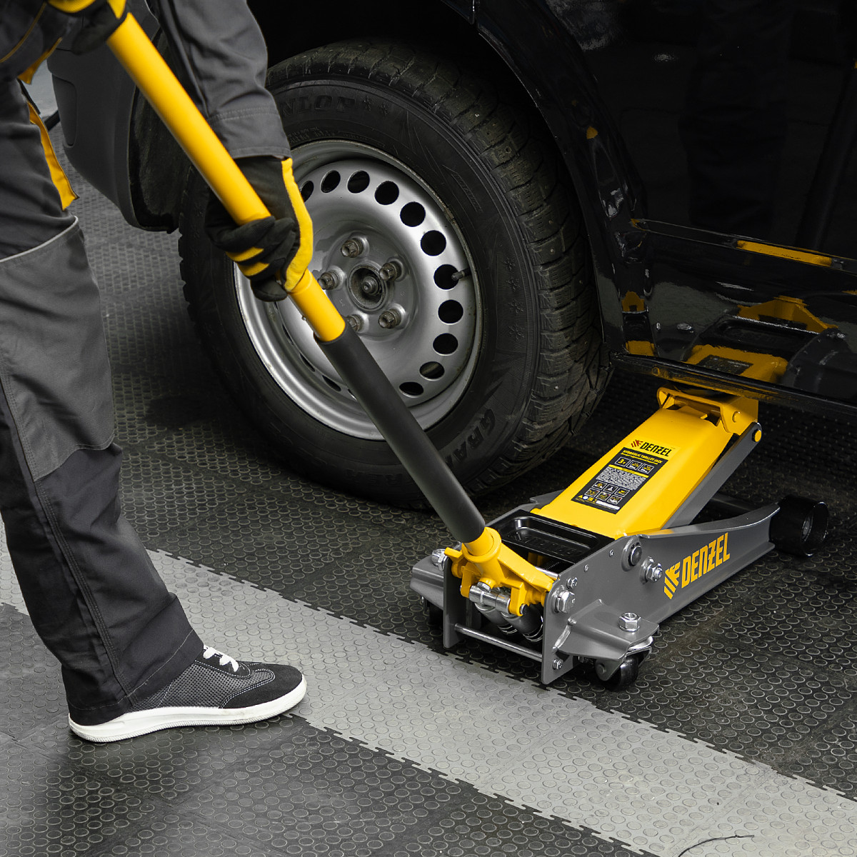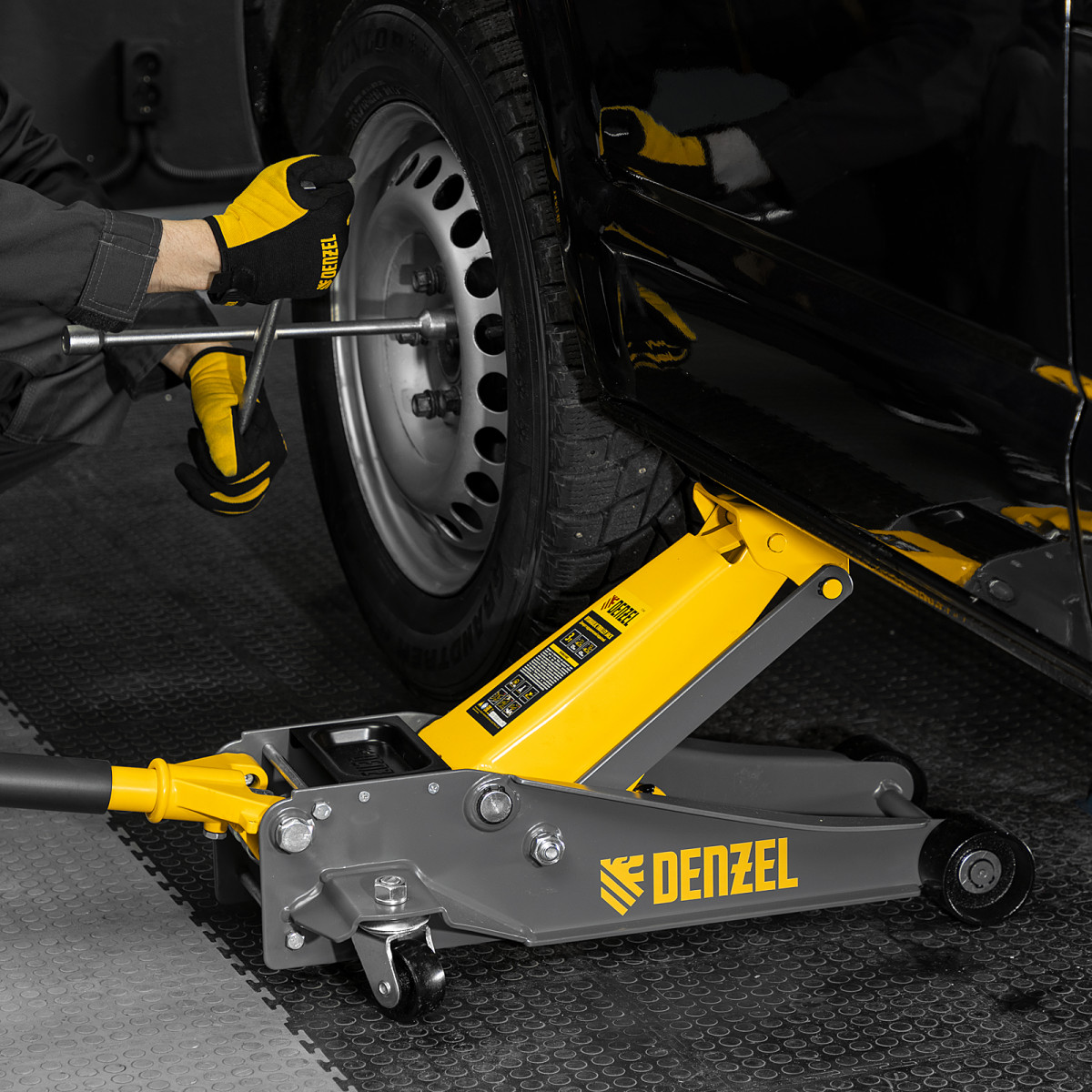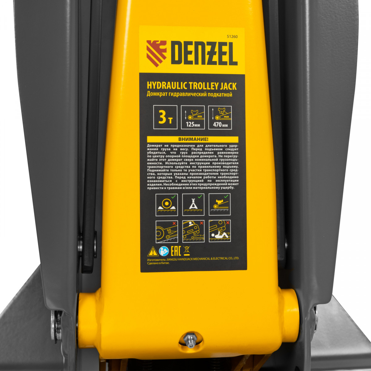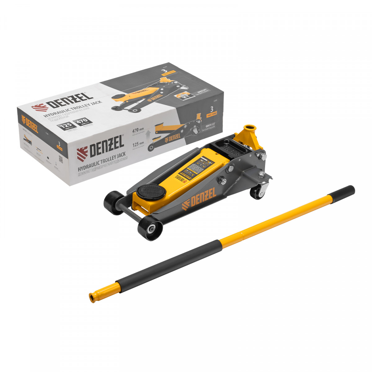 Домкрат гидравлический подкатной, 3 т, 125-470 мм, быстрый подъем, проф. Denzel