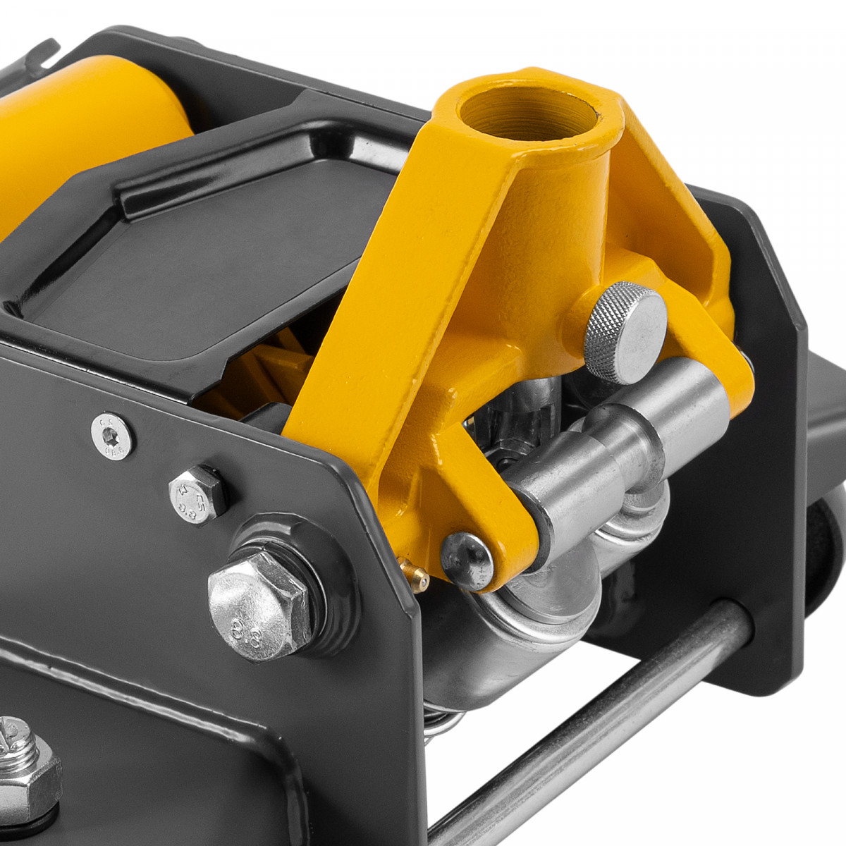 - Высокий ресурс — масленка на подъемном рычаге позволяет легко смазывать инструмент для снижения трения между движущимися механизмами, что повышает эффективность работы домкрата и продлевает его срок службы.