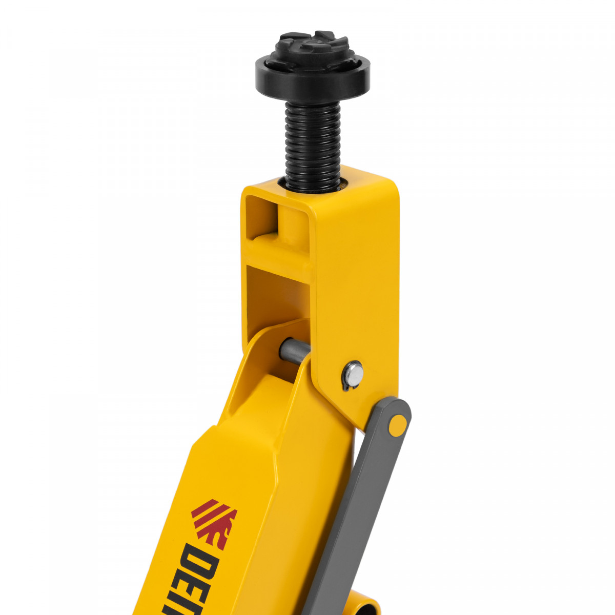 Гидравлический подкатной домкрат Denzel 51261 с фиксатором имеет высоту подхвата 190 мм и предназначен для плавного подъема грузов массой до 3 т (в том числе автомобилей класса SUV) на высоту до 532 мм. Страховочный штифт позволяет фиксировать подъемный рычаг на высоте 410 и 450 мм для безопасной работы. Домкрат пригодится владельцам легковых автомобилей со стандартным клиренсом.