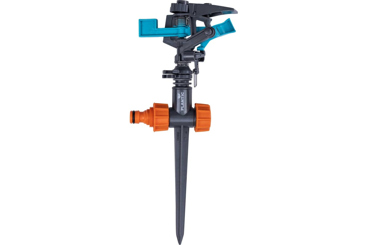 Импульсный дождеватель подходит для полива участков площадью от 500 кв. метров. Имеет прочный колышек для фиксации. Предусмотрена возможность регулировки потока воды от сильной струи до мягкого распыления.