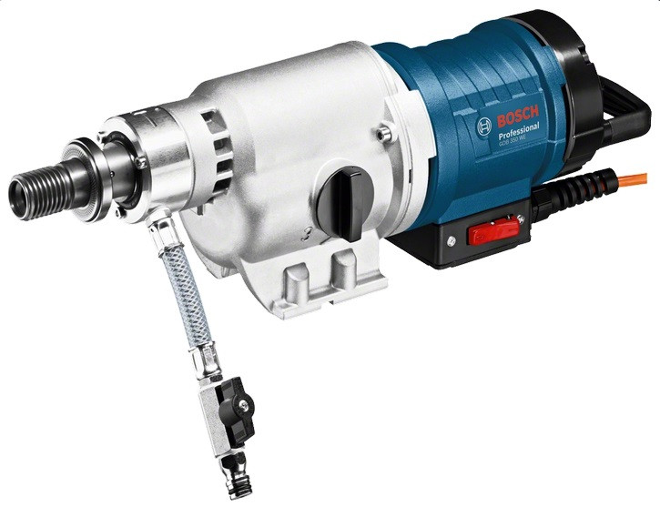 Дрель алмазного бурения Bosch GDB 350 WE  снабжена мощным трехскоростным двигателем, что позволяет сверлить отверстия в армированном бетоне диаметром до 350 мм. Прочная конструкция и редуктор со смазкой способствуют долгому сроку службы.
