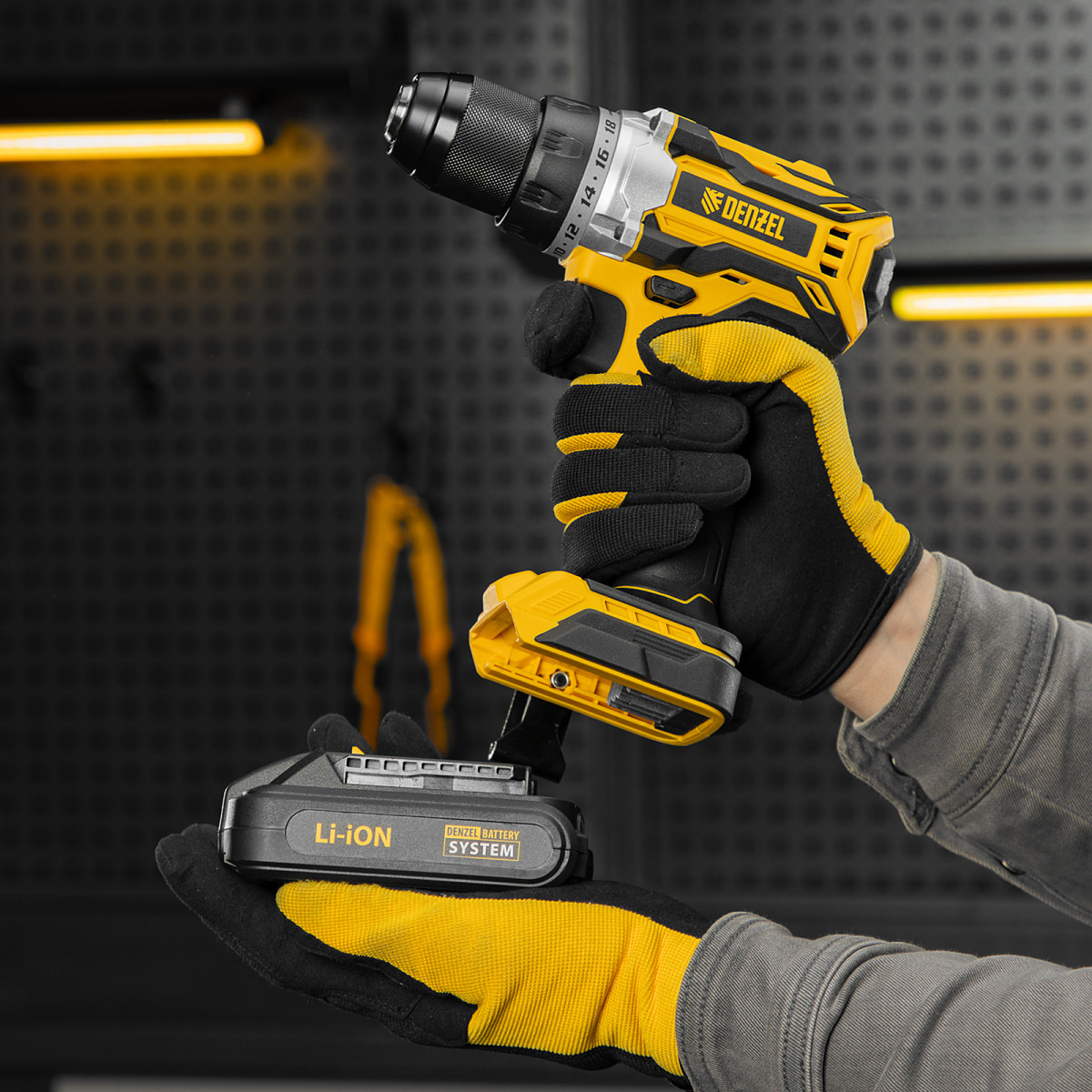 • Универсальность — аккумуляторы совместимы со всеми инструментами модельного ряда единой платформы Denzel Battery System 18V.