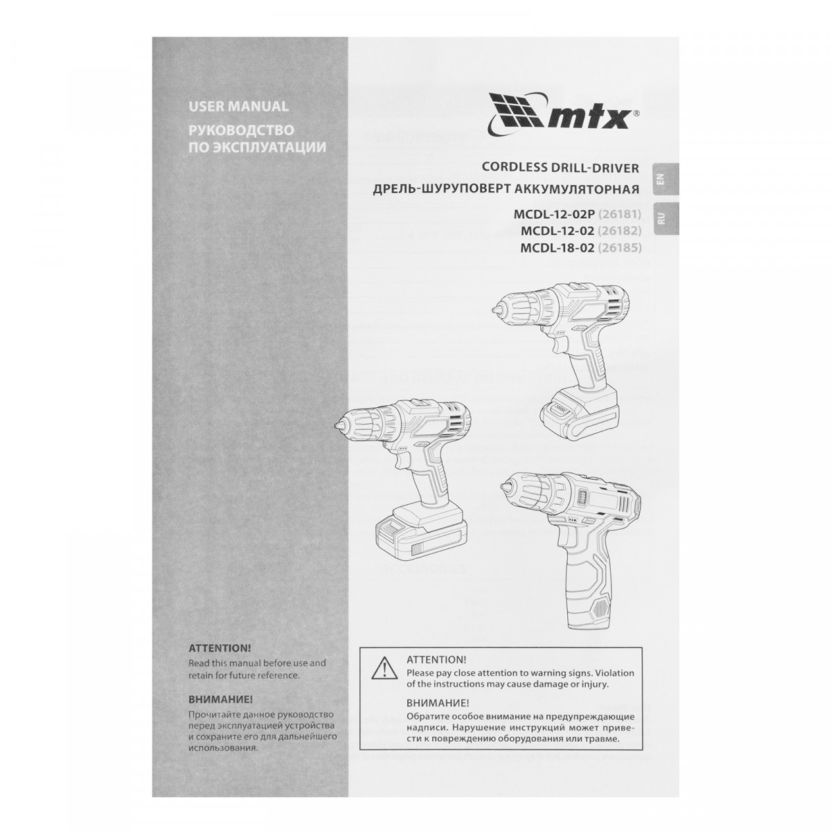 Дрель-шуруповерт аккумуляторная MCDL-12-02P, Li-Ion, 12 В, 2 акк. MTX
