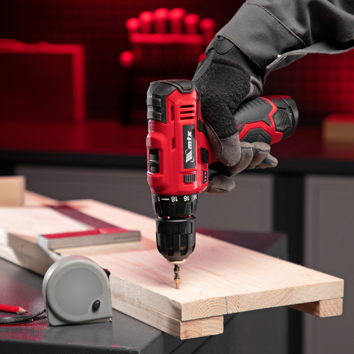 • Удобное хранение и транспортировка — дрель-шуруповерт поставляется в прочном кейсе.