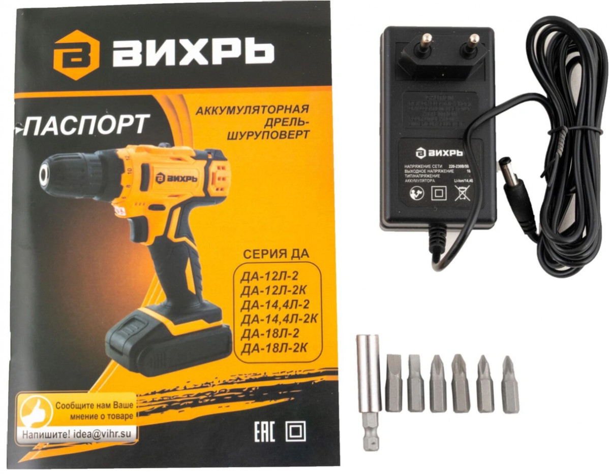 Дрель-шуруповерт аккумуляторная ВИХРЬ ДА-14,4л-2К