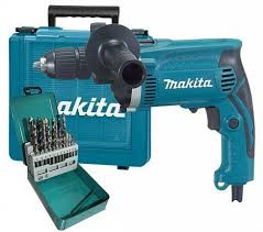 Ударная дрель Makita HP1631KX2 оснащена двигателем мощностью 710 Вт, который обеспечивает отличную производительность. Быстрозажимной патрон способствует быстрой и удобной замене оснастки. Инструмент имеет два режима работы: сверление с ударом и без. Сбоку на корпусе расположен фиксатор клавиши "Пуск" для удобства ведения длительной по времени работы. Дополнительная рукоятка обеспечивает надежный хват дрели обеими руками. В комплекте идет набор сверел D-46202, что позволяет приступать к работе сразу после покупки. Модель поставляется в чемодане, в котором её удобно хранить и транспортировать.