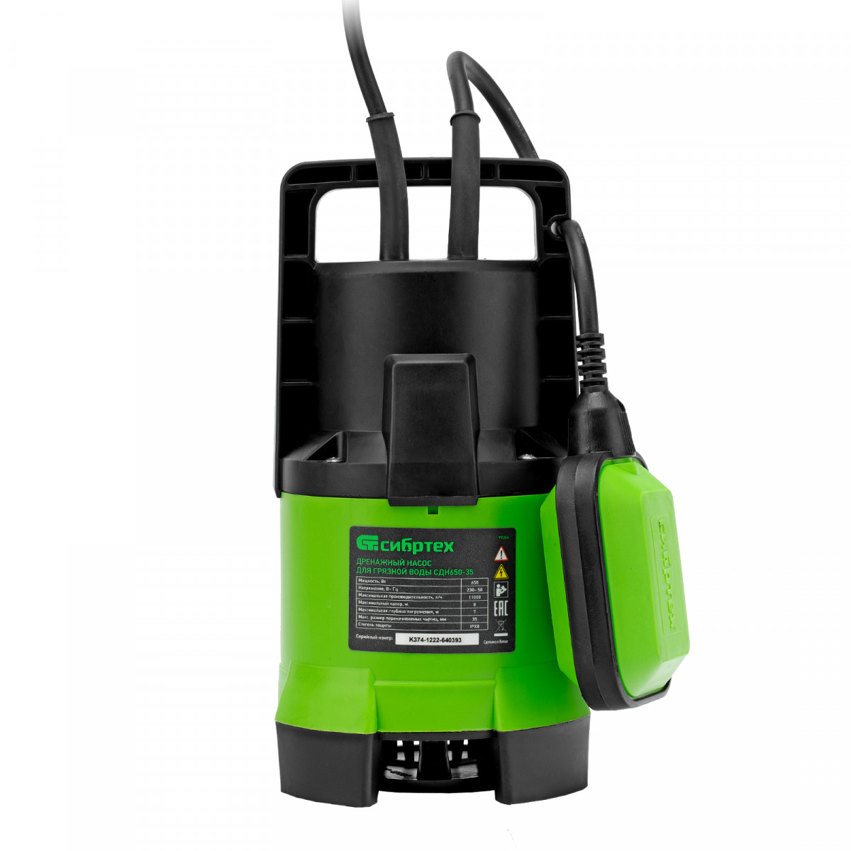 Дренажный насос для грязной воды СДН650-35, 650 Вт, напор 8 м, 11000 л/ч Сибртех
