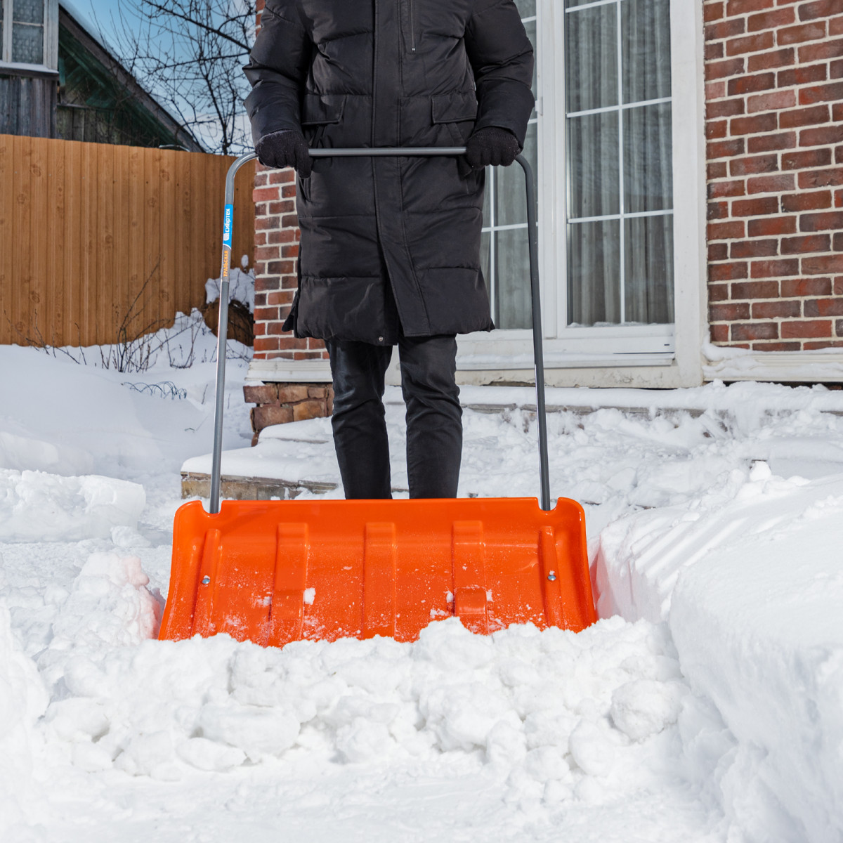 Движок для уборки снега пластиковый, 795х435х1280 мм, стальная рукоятка, усиленный Сибртех