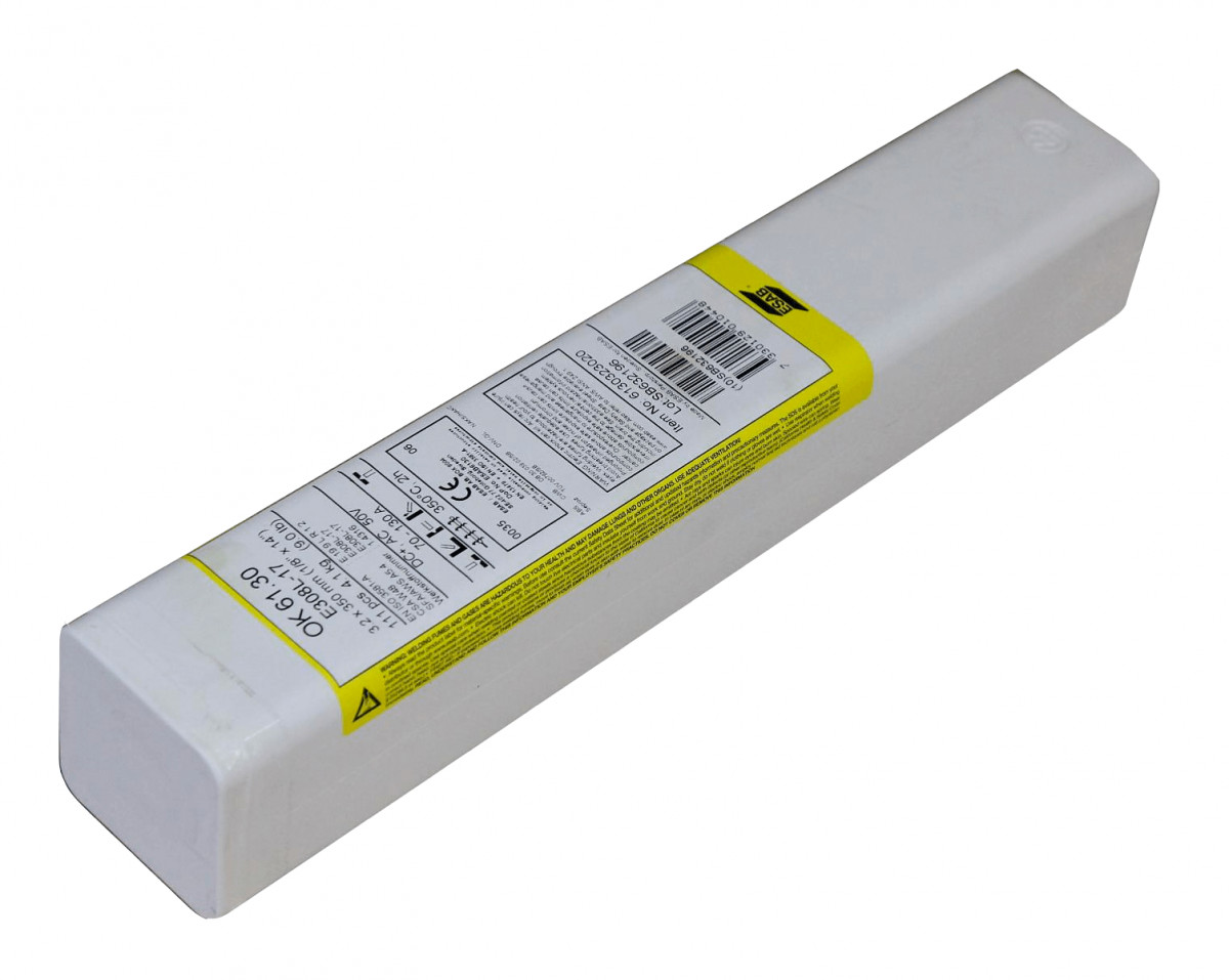 Электрод ОК 61.30 ESAB СВ000008169 предназначен для сварки методом MMA нержавеющих сталей. Сварка ведется во всех пространственных положениях. Работы следует проводить на постоянном и переменном токе. Наплавленный металл образует ровный и высококачественный шов.