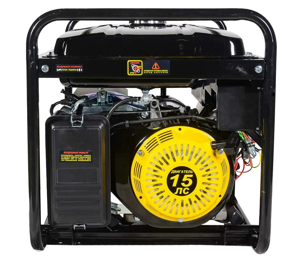 Генератор оснащен двигателем мощностью 15 л. с. и работает на неэтилированном бензине АИ-92. В качестве топлива может использоваться газ, но после установки специального дополнительного оборудования. Емкость бензобака составляет 25 л, емкость системы смазки – 1100 мл. Запуск осуществляется посредством ручного стартера или электростартера от АКБ.