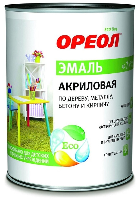 Эмаль акриловая предназначена для окрашивания деревянных, металлических, минеральных поверхностей снаружи и внутри помещений, кроме пола, также возможно нанесение на ранее окрашенные, в том числе алкидными материалами, поверхности.