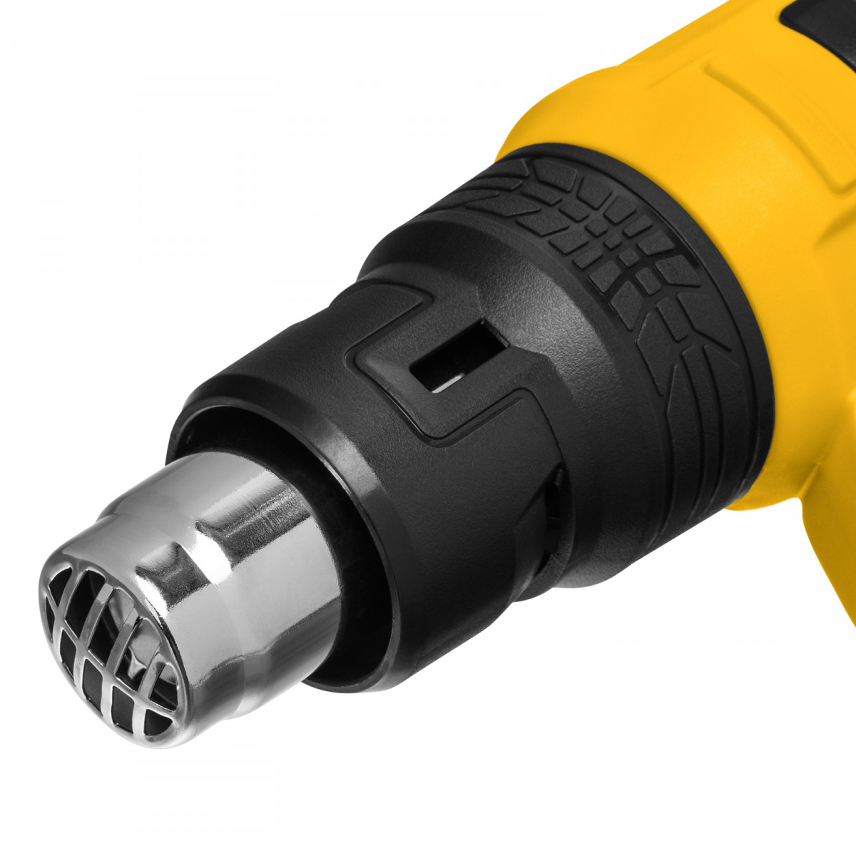 Фен технический Denzel HG-2000M 28005 мощностью 2000 Вт, с 3 режимами работы, подходит для снятия лака и краски с различных поверхностей, размораживания и пайки труб, создания изгиба в пластиковых деталях, генерации точечного теплового потока для нагрева небольших участков и др. Справиться с этими задачами помогает треугольный скребок и 4 насадки: плоская, полукруглая, отражающая и редукционная.,Мощность фена 2 кВт обеспечивает стабильную производительность на уровне 250/500 л/мин, в зависимости от выбранного режима. Температура выходящего потока составляет 50/50-450/50-600 ℃.