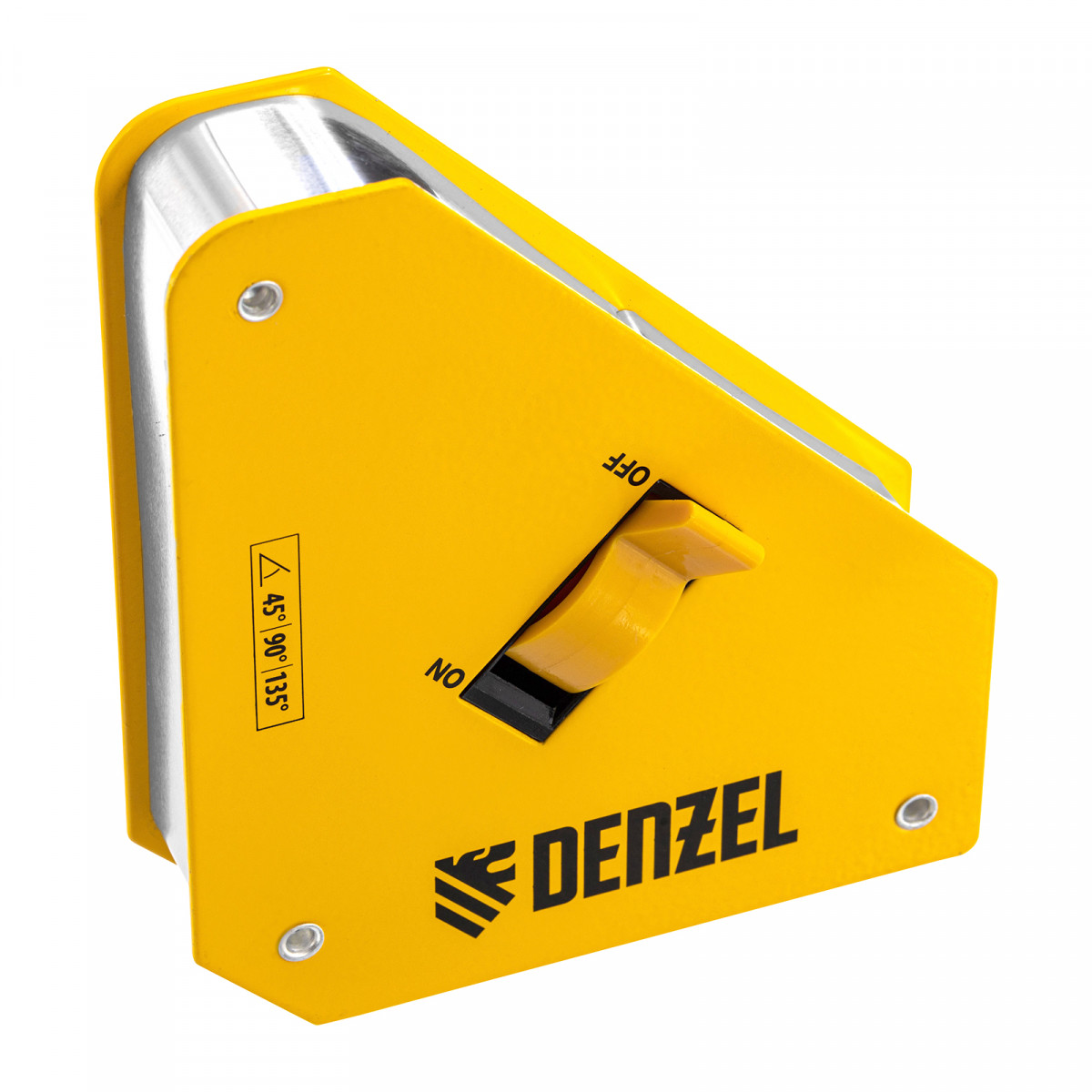 Магнитный фиксатор отключаемый Denzel способен удерживать металлические предметы под углом 45° и 90°, облегчая установку и снятие.