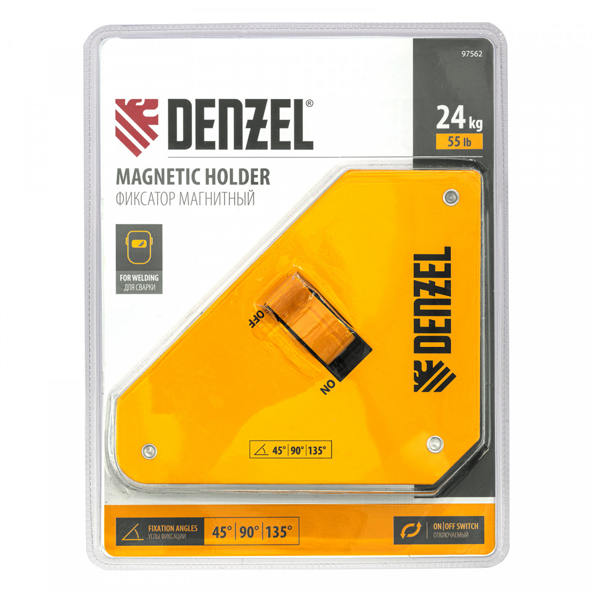 Фиксатор магнитный отключаемый для сварочных работ усилие 55 LB, 45х90 град. Denzel