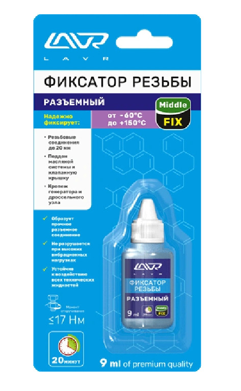 Фиксатор резьбы "Разъёмный" MiddleFIX LAVR 9мл. Ln1733