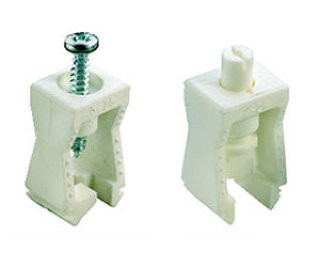 Назначение. Фиксаторы применяются в комплекте с установочными планками и служат для быстрой фиксации кабелей и проводов в параллельных кабельных трассах. Применение фиксаторов позволяет удалять и добавлять кабели в уже проложенные кабельные трассы. Конструкция и принцип работы. Зажим кабеля или пучка проводов осуществляется двумя противолежащими фиксаторами. Сам фиксатор прижимается к установочной планке при помощи пластикового или металлического винта (шурупа) Материал крепежа. Ударопрочный полистирол белого цвета. Монтаж. Своими фигурными прорезями фиксатор вставляется в проем установочной планки, прижимает кабель и фиксируется винтом.