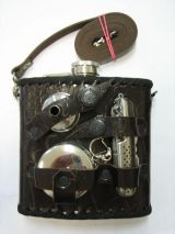 Фляжка из нержавеющей стали, обшитая тисненой натуральной кожей под крокодиловую, коричневого или черного цвета, со съемным ремешком
