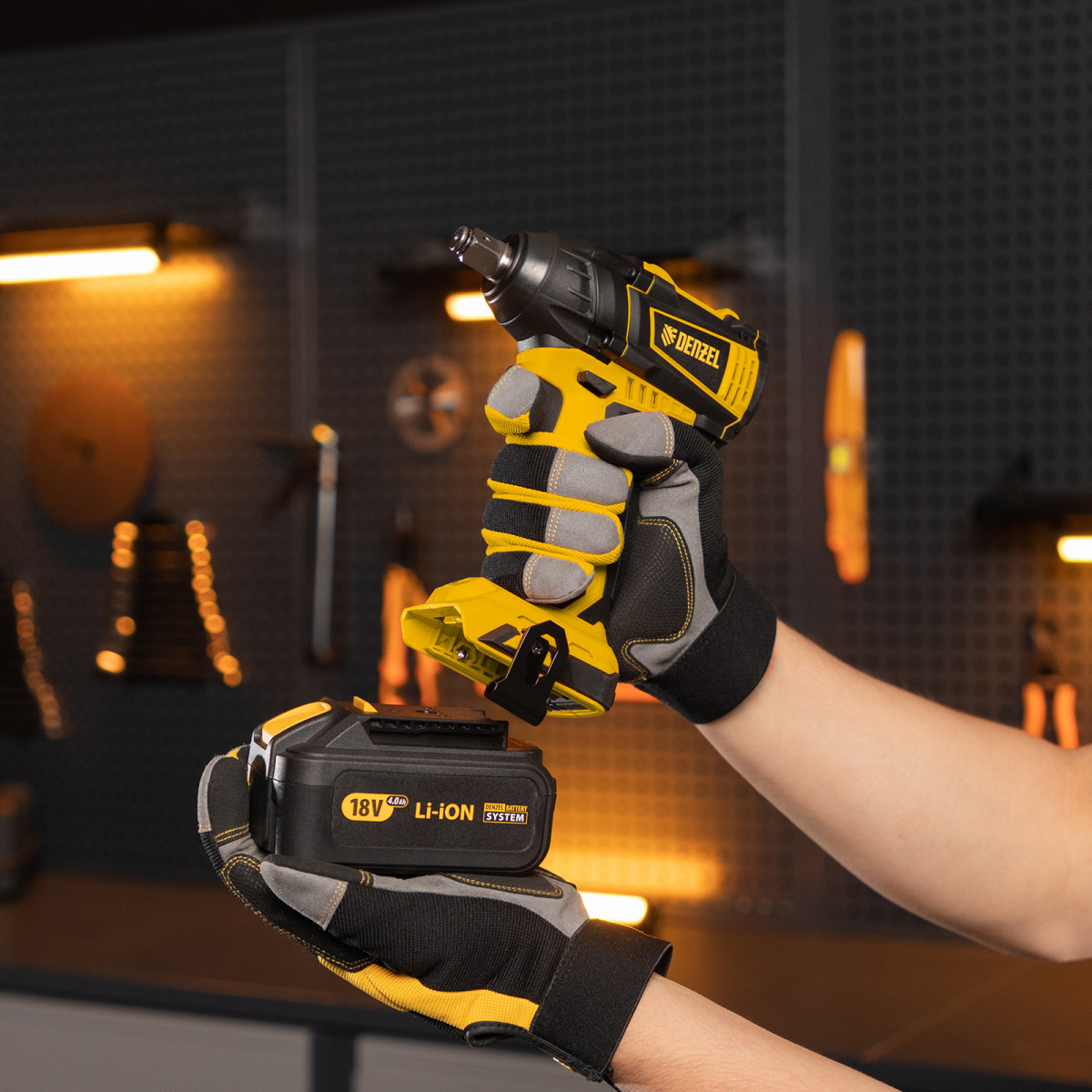 • Универсальность — аккумулятор 4 А/ч Li-ion совместим с любым инструментом 18V Denzel battery system серии IB.