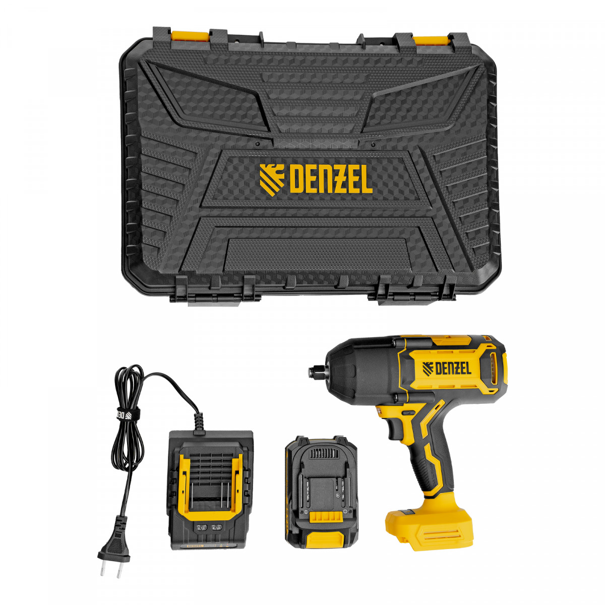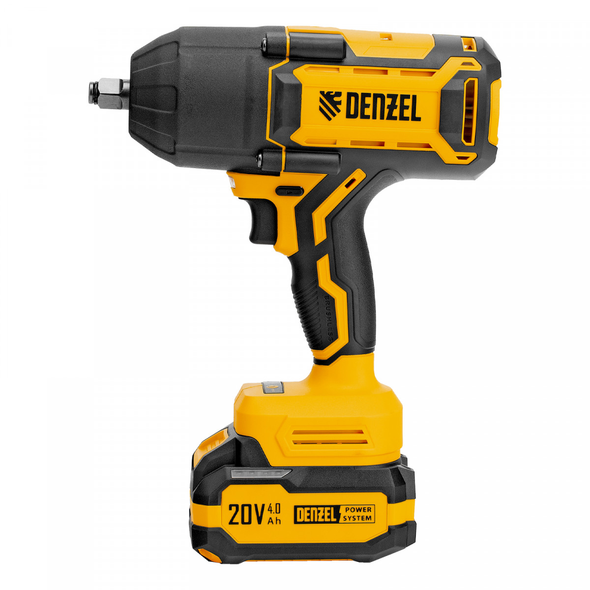 - Универсальность — аккумулятор Li-Ion емкостью 4 А·ч совместим со всеми инструментами единой платформы Denzel Power System 20V.