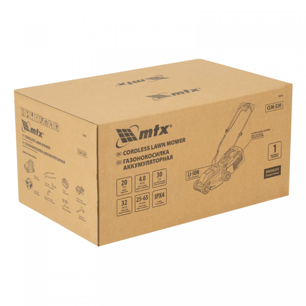 Аккумуляторная газонокосилка MTX CLM-320 58901 с бесщеточным двигателем и травосборником объемом 30 л работает от аккумулятора Li-Ion с рабочим напряжением 20 В и обеспечивает ширину скашивания 320 мм. Высоту скашиваемой травы можно регулировать: предусмотрено 3 уровня в диапазоне 25-65 мм. Газонокосилка оптимальна для ухода за садом, огородом или небольшим приусадебным участком.