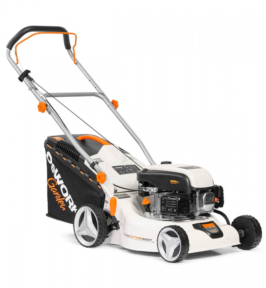 Бензиновая газонокосилка DeWorks L 43P используется для кошения газонной травы на частном участке.