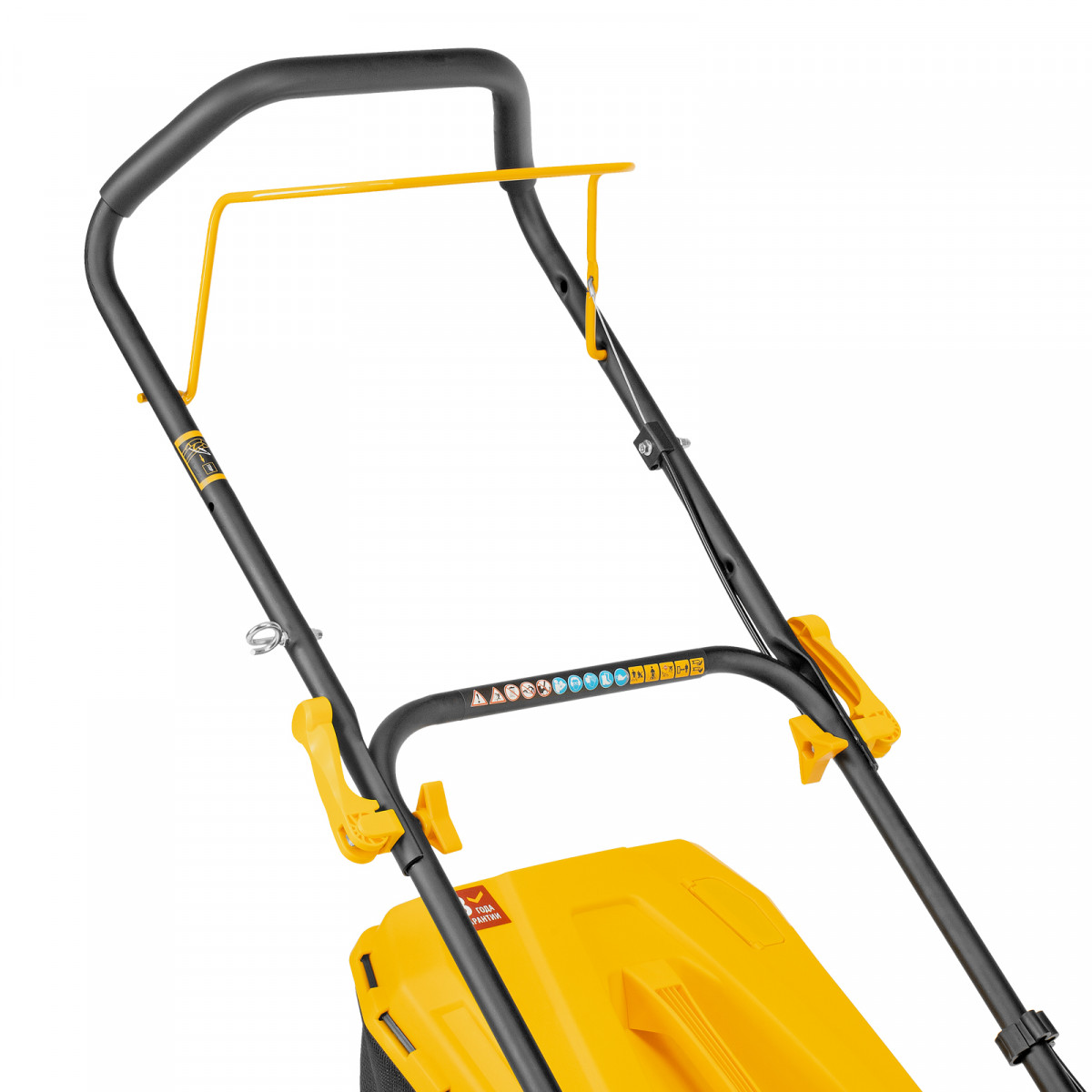 - Простая регулировка высоты скашивания — достаточно установить рычаг в нужное положение.