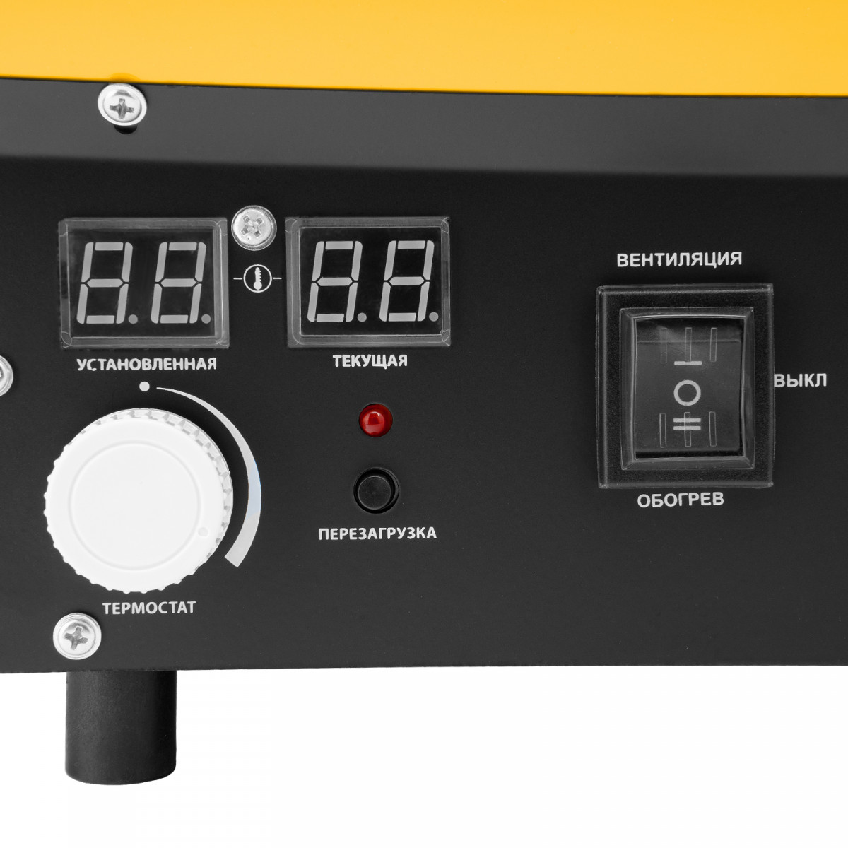 - Цифровой термостат — если температура в помещении становится ниже заданной, пушка включается автоматически для точного поддержания выставленных значений.