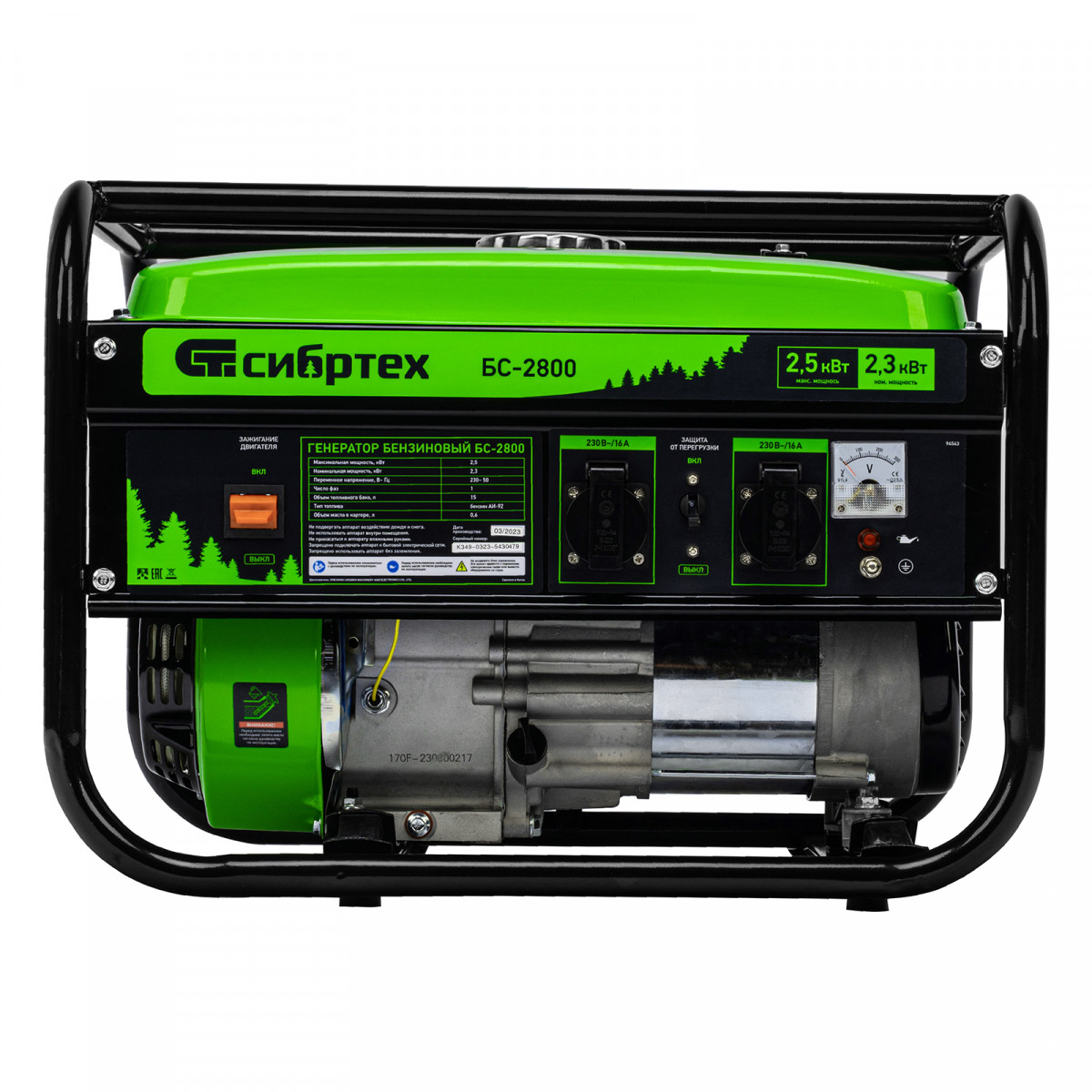 Генератор бензиновый БС-2800, 2.5 кВт, 230В, четырехтактный, 15 л, ручной стартер Сибртех