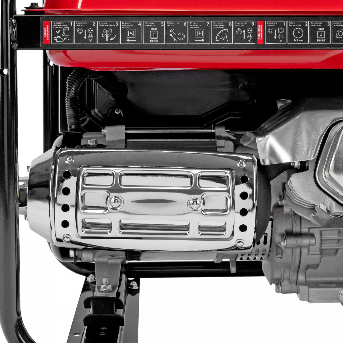 - Защита двигателя — генератор не запускается при низком уровне масла, воздушный и топливный фильтры предотвращают попадание твердых частиц в цилиндр и посторонних примесей в топливо.