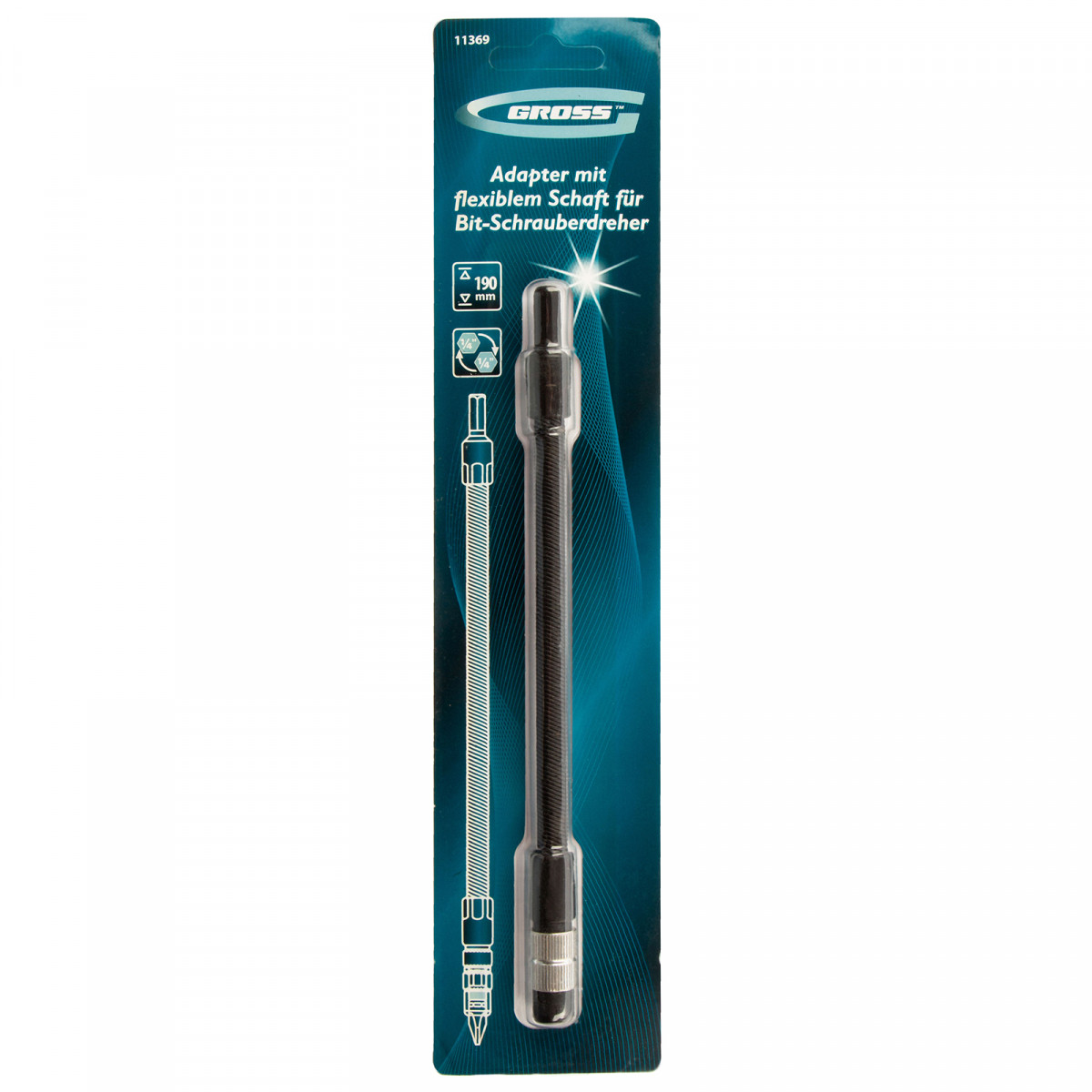 Гибкий переходник для бит Gross 11369 длиной 190 мм, с присоединительным размером 1/4″, облегчает монтаж и демонтаж резьбовых соединений в труднодоступных местах. Позволяет работать со стандартными битами, легко меняя их. Устанавливается в патрон шуруповерта.