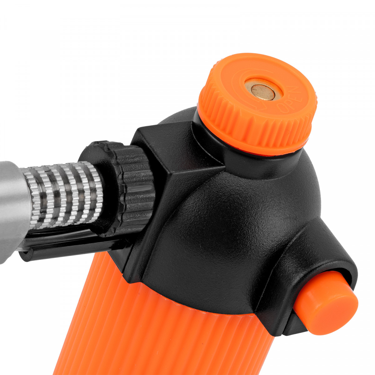 • Регулировка силы нагрева — поворотная ручка в верхней части горелки позволяет контролировать подачу газа.