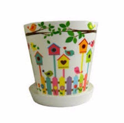 Горшок ДЕКО 1 л Птицы, с поддоном, диаметр горшка 13 см, высота 12,5 см.