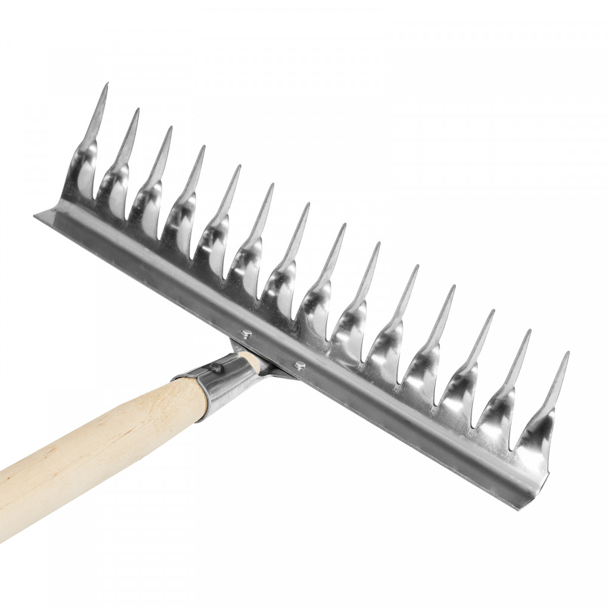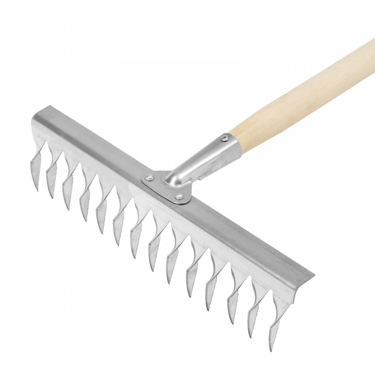Грабли, нержавеющая сталь, 340 х 1300 мм, 14 витых зубьев, деревянный черенок, Сибртех
