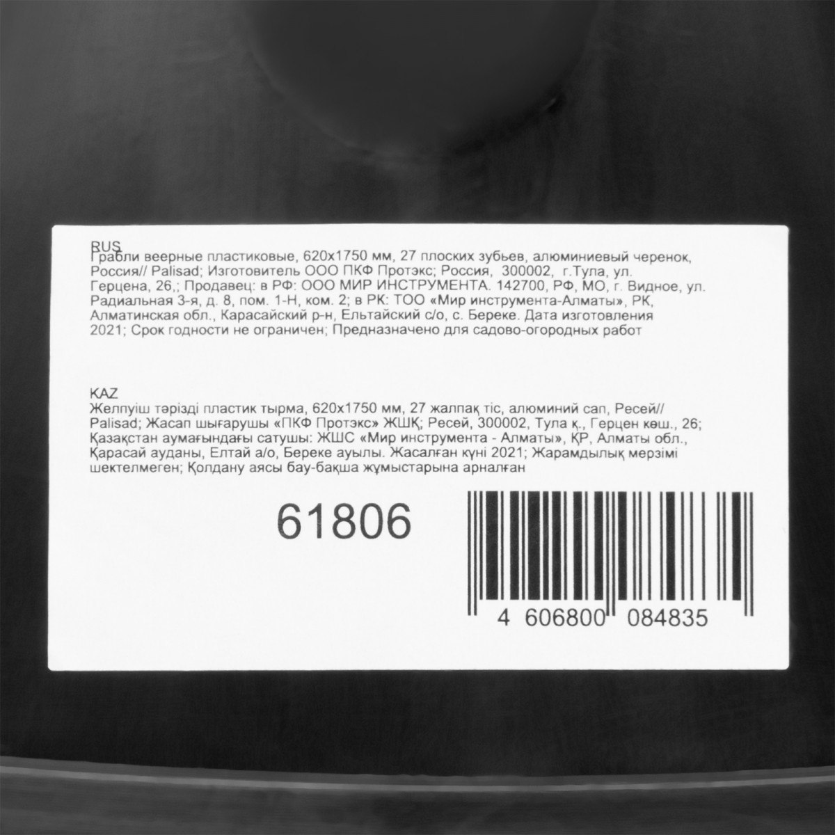 Алюминиевый черенок обеспечивает высокую прочность и надежность при работе с граблями Palisad.
