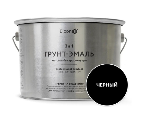 Грунт-эмаль по ржавчине 3в1 Элкон матовая черная RAL 9005 2 кг