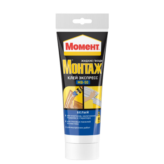Сила схватывания 50 кг/кв.м гвоздя жидкого MOMENT Монтаж обеспечивает надежное крепление строительных материалов.