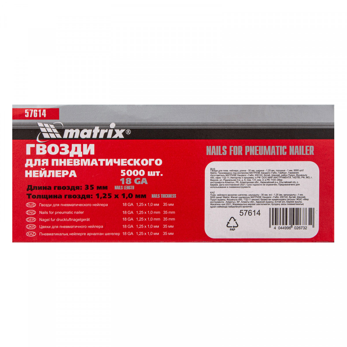 Гвозди для пневматического нейлера, длина 35 мм, ширина 1.25 мм, толщина 1 мм, 5000 шт Matrix