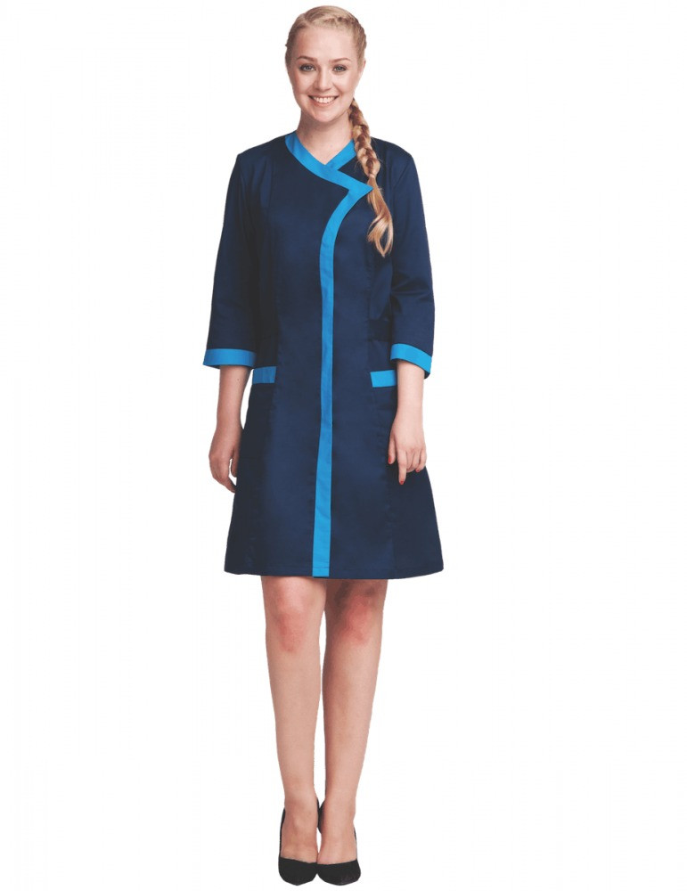 Халат рабочий женский «Сакура» отличается качественным исполнением и эстетичным внешним видом. Халат изготовлен в соответствии с ГОСТ, надежно защищает от общих производственных загрязнений и механических воздействий. Плотная ткань халата устойчива к многократным стиркам, сохраняет форму и цвет. Рабочая одежда дополняется вшивным поясом на завязках, который подчеркивает и регулирует линию талии. Короткий женский халат длиной до колена отлично сидит по фигуре, не стесняет движения. Благодаря контрастному принту и двойному отложному воротничку модная спецодежда выглядит привлекательно и современно. Халат застегивается на молнию, предусматривает наличие вместительных боковых карманов для хранения нужных мелочей. Если Вы ищете халат рабочий большого размера, то также обратите внимание на данную модель, т.к. она учитывает все потребности женщин разной комплекции.