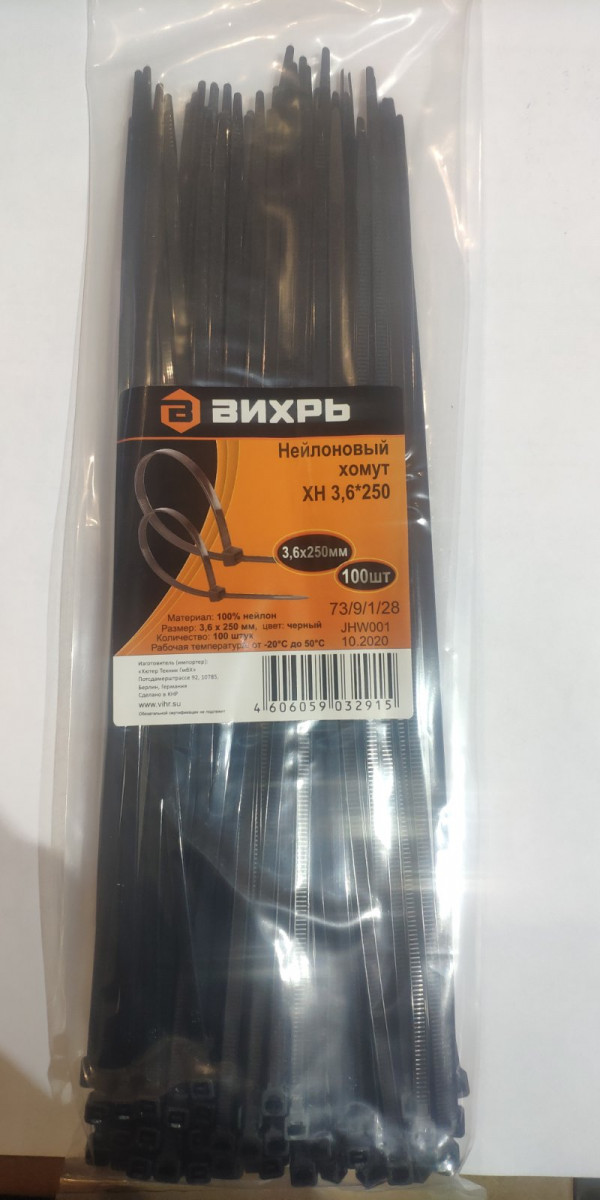 Хомут нейлоновый «Вихрь» (стяжка) — соединительный элемент, применяется для крепления и фиксации различных конструкций, систем монтажа, электропроводки и многого другого. Может использоваться при маркировке электромонтажных кабелей, т.к хомут одновременно выполняет функции крепежного изделия и стяжки для электропроводов. Хомуты являются достаточно быстрым и удобным способом крепления и бандажирования, также их можно использовать как в помещении, так и за его границами.