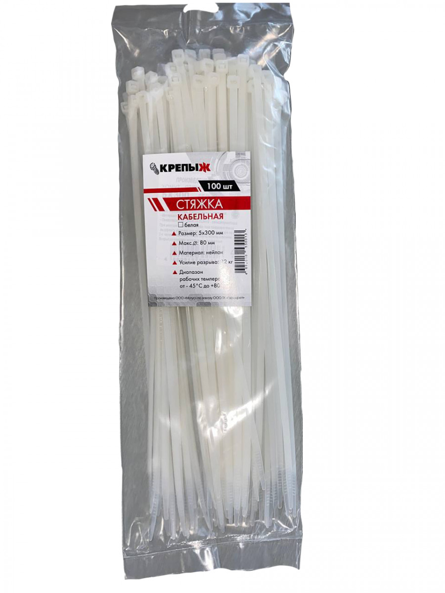Хомут нейлоновый 5*300 мм белый КРЕПЫЖ (100шт)