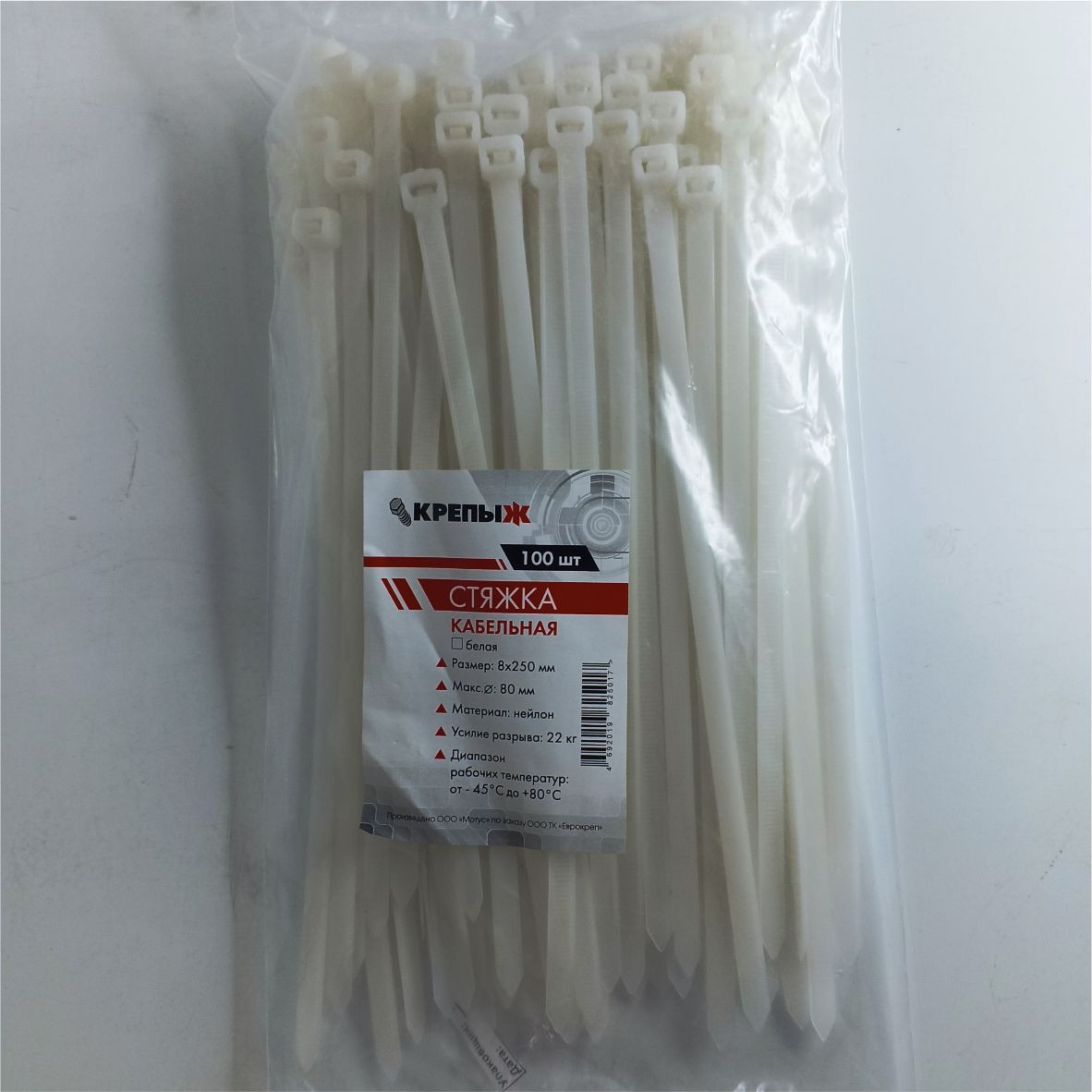 Хомут нейлоновый 8*250 мм белый КРЕПЫЖ
