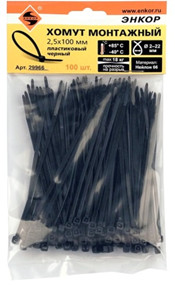 Хомут пластиковый 2.5Х100 черный Энкор (100 шт)