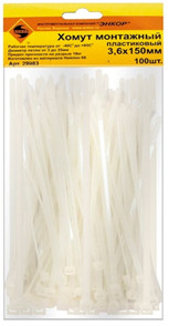 Хомут пластиковый 3.6Х150 белый Энкор (100 шт)