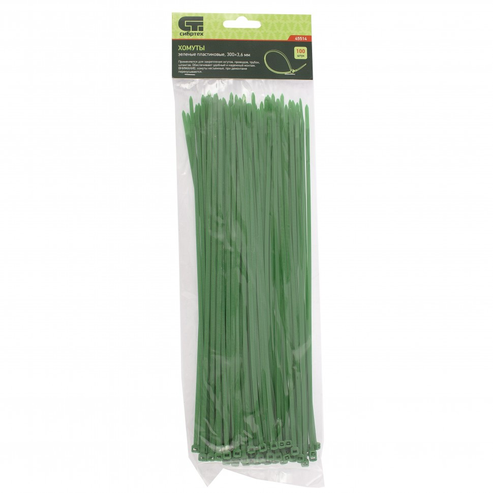 Хомуты, 300 x 3.6 мм, пластиковые, зеленые, 100 шт Сибртех